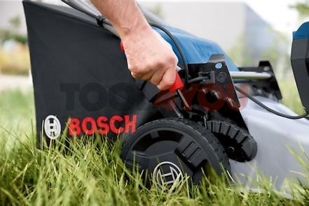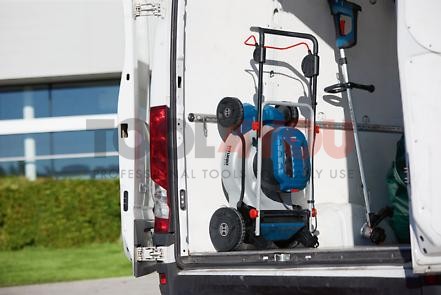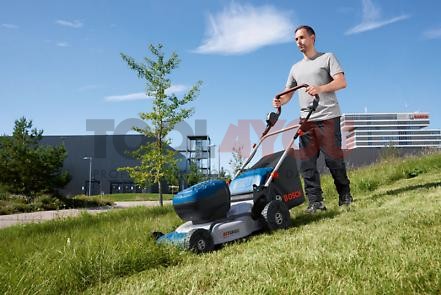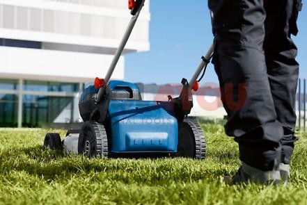 - Wysoki komfort pracy dzięki średnicy cięcia 46 cm, łatwej 2-stopniowej regulacji wysokości uchwytu oraz składanemu uchwytowi, który umożliwia przechowywanie urządzenia w pionie, przez co zajmuje ono mało miejsca