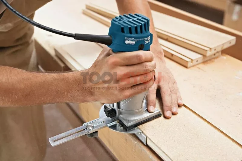 - Bosch GKF 600 060160A100 posiada bogaty wachlarz osprzętu w standardzie - m.in. 2 prowadnice, 2 zaciski, solidna walizka narzędziowa.
