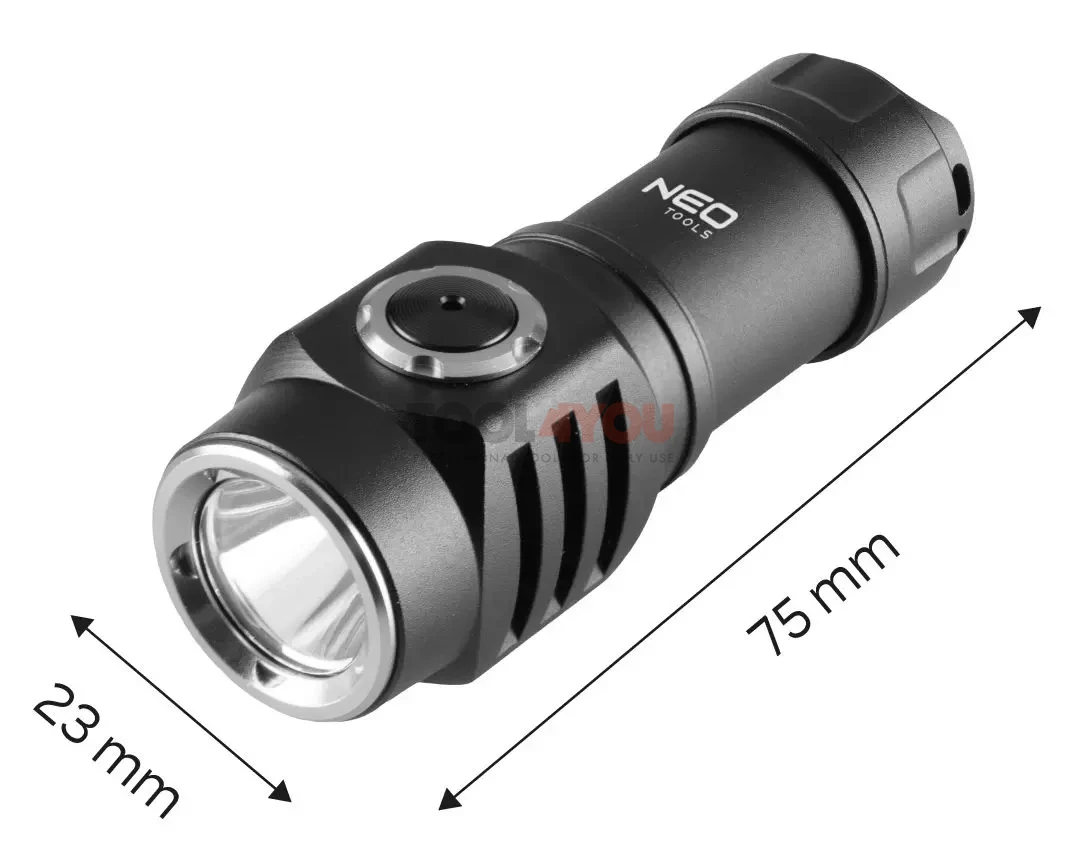 Latarka akumulatorowa o zasięgu 100 m posiada w obudowie gniazdo do ładowania kablem USB C, które zabezpieczone jest gumową klapką przed czynnikami zewnętrznymi. Korpus wykonano z wysokiej jakości aluminium.