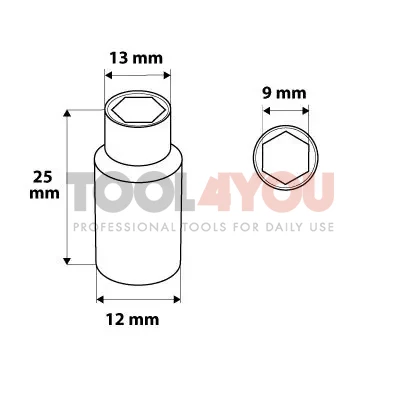 Nasadka sześciokątna 1/4", 9mm