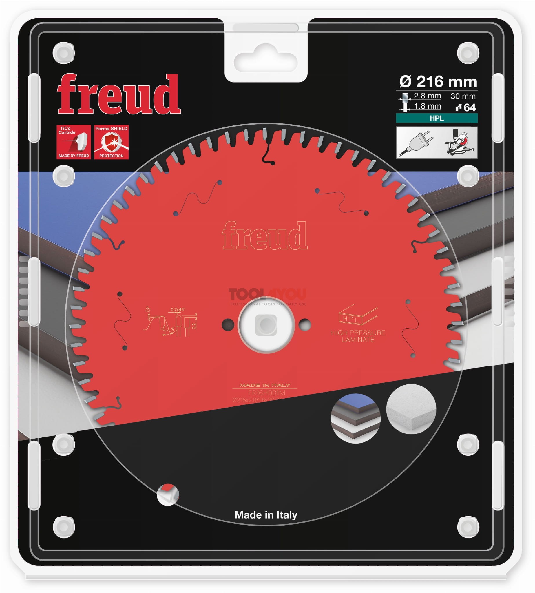 - Innowacyjny proces lutowania trójmetalowego, w trakcie którego ostrza z węglika spiekanego łączone są z korpusem piły. Ta stworzona przez firmę Freud metoda obejmuje umieszczenie stopu miedzi między dwiema warstwami stopu srebra, zapewniając dodatkową elastyczność i wysoką udaroodporność .