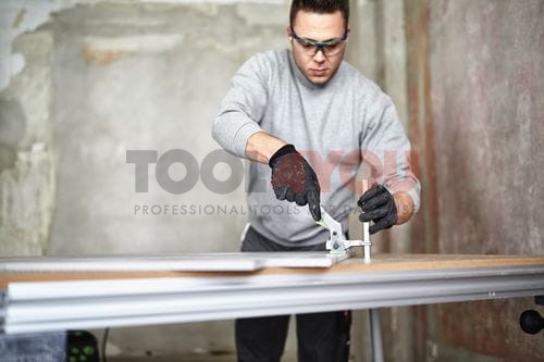 - Do bezpiecznego mocowania szyny prowadzącej, wkładany jest do dolnego wpustu