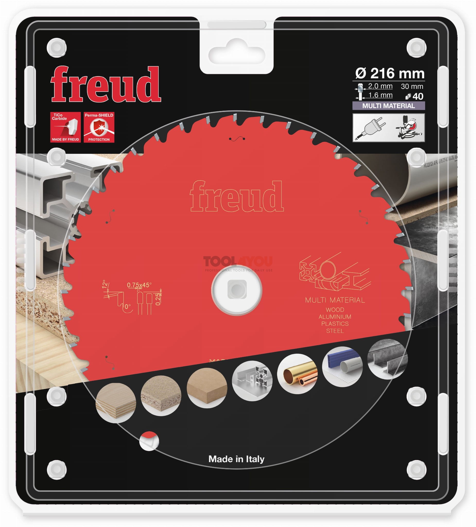 - Innowacyjny proces lutowania trójmetalowego, w trakcie którego ostrza z węglika spiekanego łączone są z korpusem piły. Ta stworzona przez firmę Freud metoda obejmuje umieszczenie stopu miedzi między dwiema warstwami stopu srebra, zapewniając dodatkową elastyczność i wysoką udaroodporność .