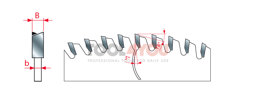 - Kształt zęba (ZĄB): NS - na przemian - skośny