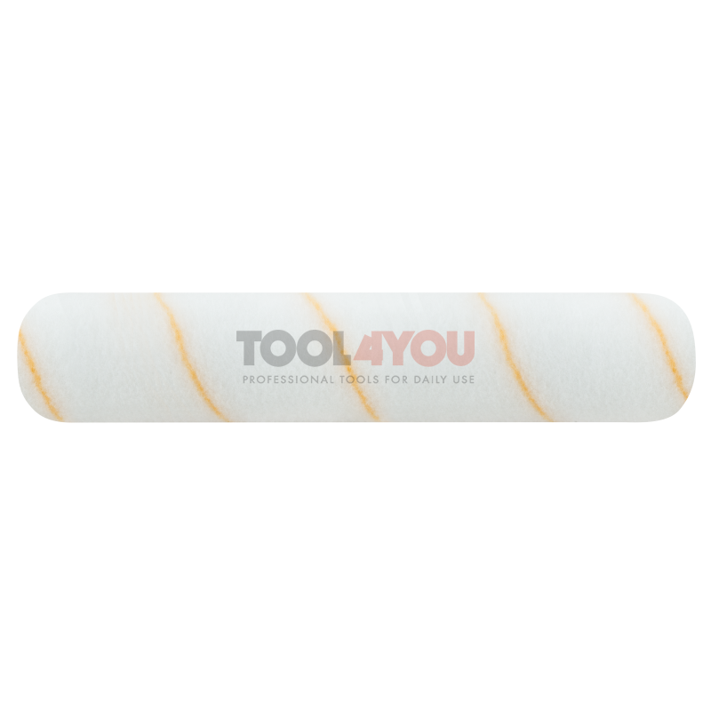 Opatentowany, wysokiej gęstości biały materiał w złote prążki pozostaje sprężysty i odporny na sklejanie się włosia, zapewnia bardzo gładkie profesjonalne wykończenie powierzchni, otwarty rdzeń pozwala na łatwe czyszczenie wałka. Tkanina jest wyjątkowo wytrzymała.
