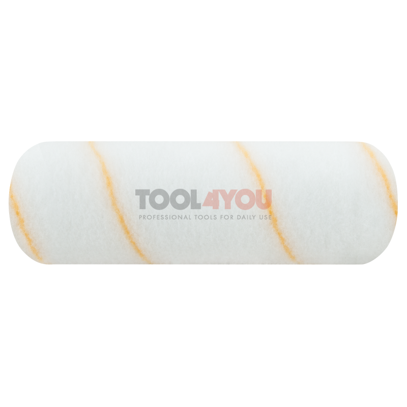 Opatentowany, wysokiej gęstości biały materiał w złote prążki pozostaje sprężysty i odporny na sklejanie się włosia, zapewnia bardzo gładkie profesjonalne wykończenie powierzchni, otwarty rdzeń pozwala na łatwe czyszczenie wałka. Tkanina jest wyjątkowo wytrzymała.